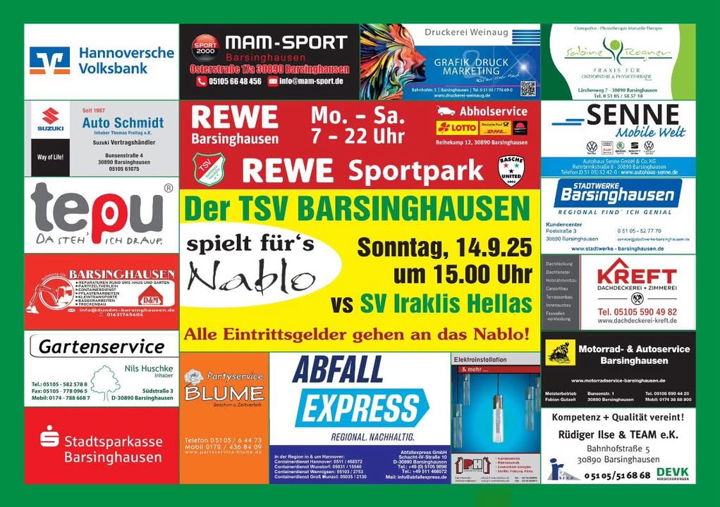 Heute um 15:00 Uhr empfangen die Barsinghäuser Jungs Hellas Iraklis im REWE Thorsten Krause Barsinghausen Sportpark!