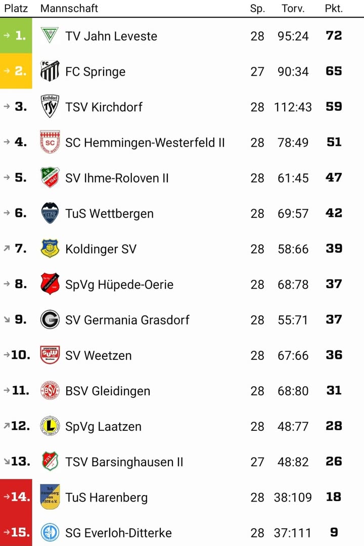 Glückwunsch an @tvjahnlevestevon1922 an die Meisterschaft und viel Erfolg in der Bezirksliga! Viel Glück an @fc.springe_1911 in der Aufstiegrelegation und Respekt für diese starke Saison! Zudem viel Erfolg an @tusharenberg1 und @everloh_ditterke in der 1. Kreisklasse. Ebenso wollen wir @spvg_laatzen zu einer grandiosen Rückrunde und Aufholjagd gratulieren. Natürlich danken wir auch unseren anderen Gegnern, die Spiele liefen insgesamt betrachtet sehr fair und wir wünschen allen für die kommende Kreisligasaison wieder viel Spaß und Erfolg.