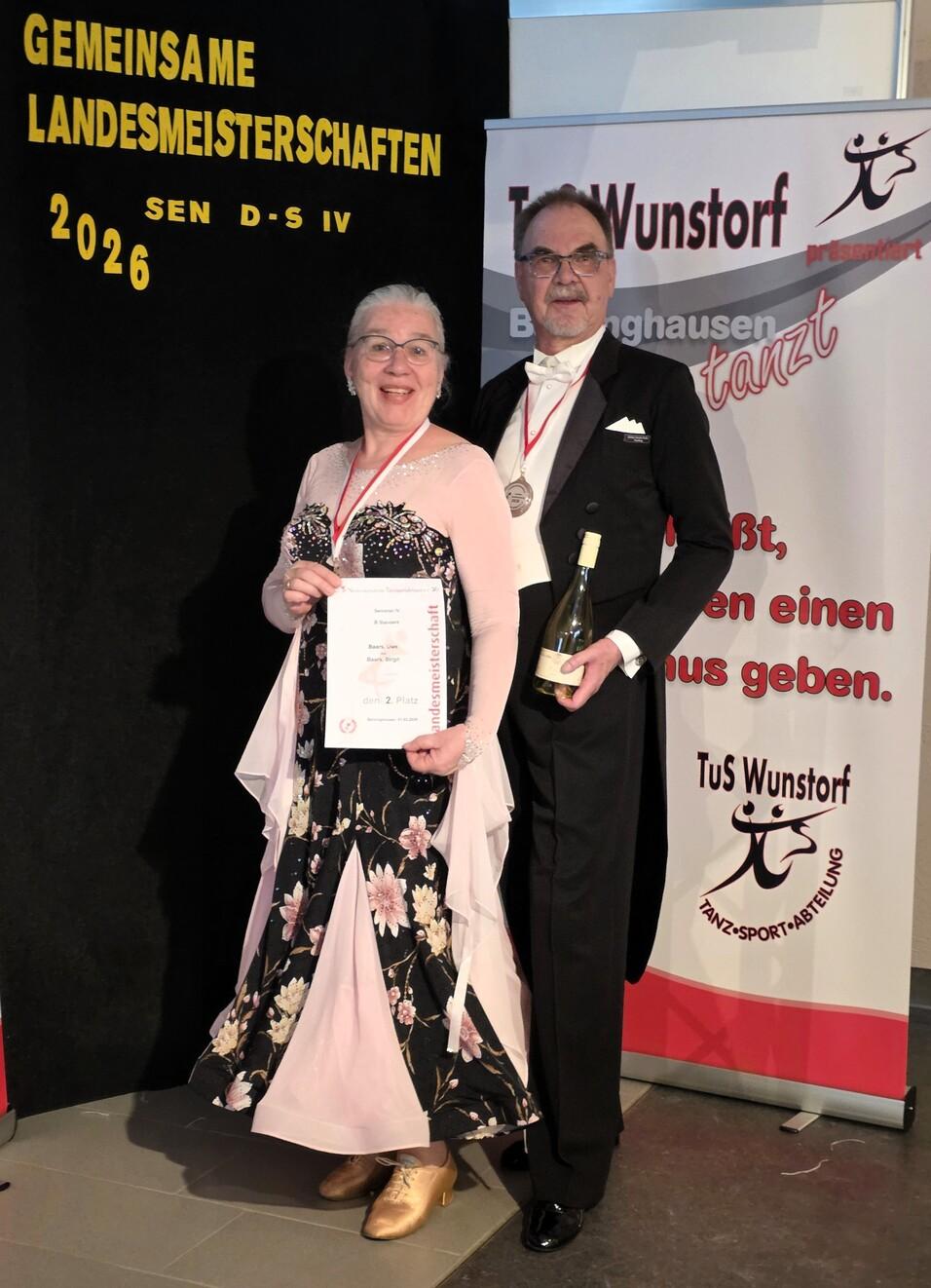 Vorwort: Zum 01.01.2026 wechselten Uwe und Birgit Baars altersbedingt in die Startklasse IV B Standard. Da vorher kein Turnier in ihren Terminplan passte, sollten die gemeinsamen Landesmeisterschaften im Nordverbund das erste Turnier in der neuen Startklasse sein, insgesamt ihr 70. Turnier.