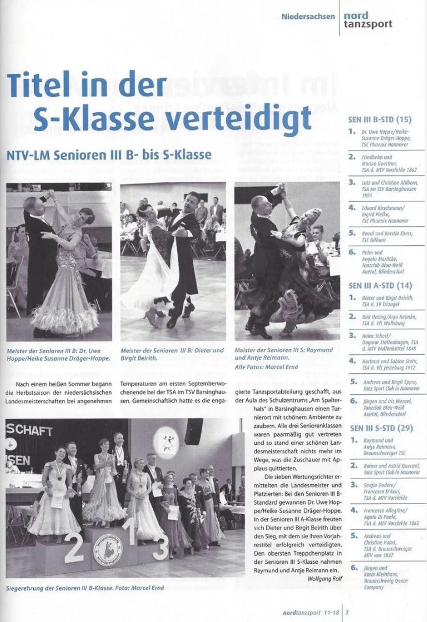 01.12.2018 - Auszug aus dem Tanzspiegel 11 / 2018 - NTV-LM Senioren III B - bis S – Klasse