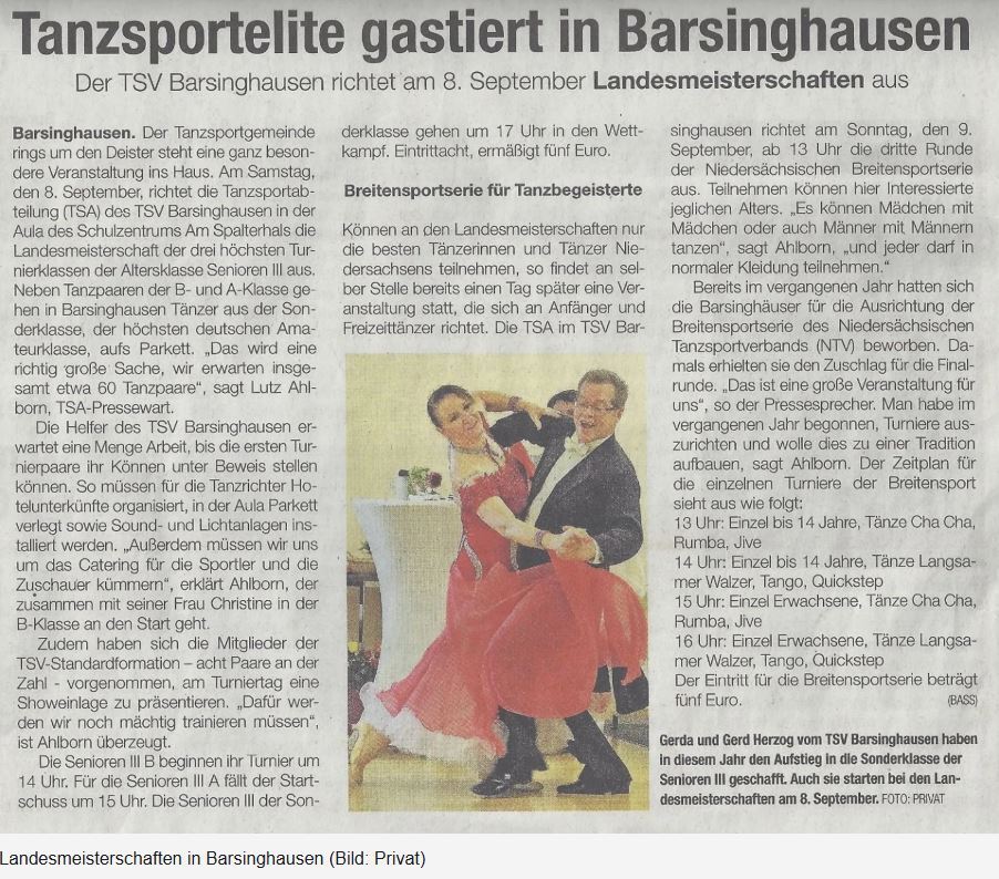 Barsinghausen: Tanzsportelite gastiert in Barsinghausen - Landesmeisterschaften und Breitensportserie