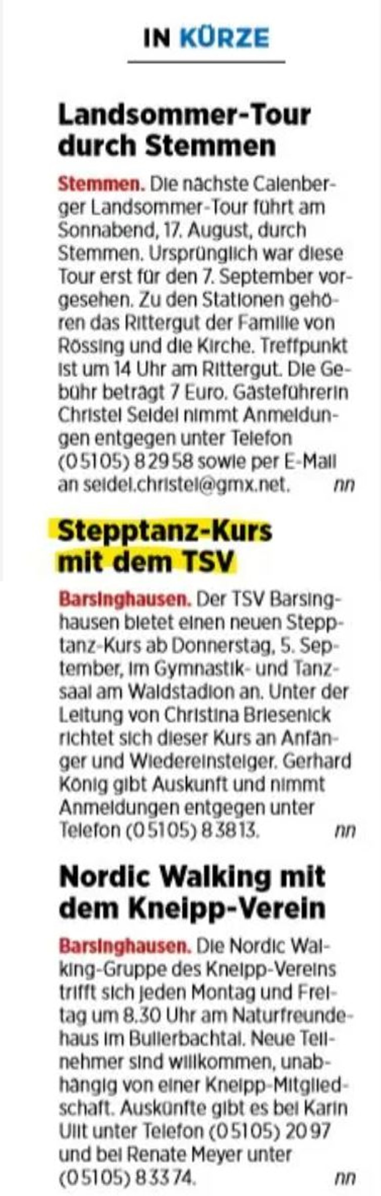 Stepp-Tanz-Kurs im TSV Barsinghausen