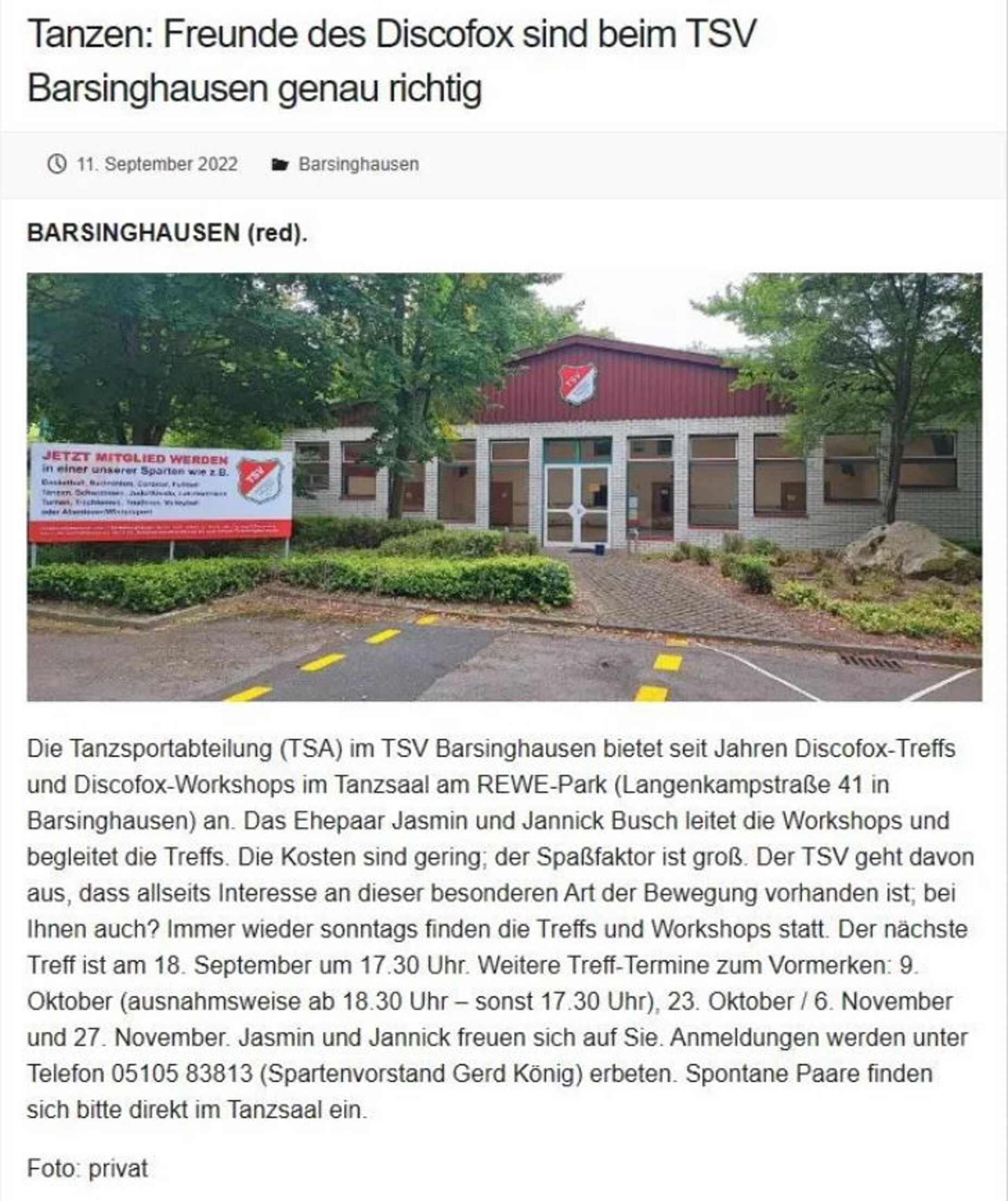 - Berichte (Turnier-Tanzsport und Veranstaltungen)