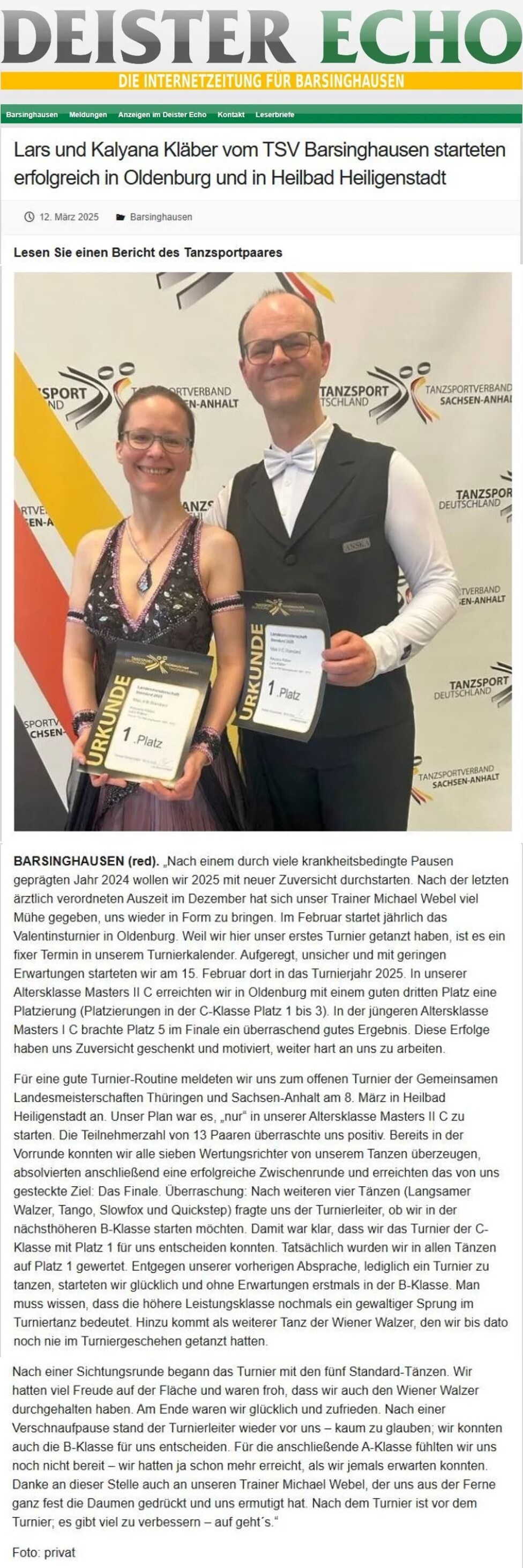 12.03.2025 - Deister Echo - Lars und Klayana Kläber starten erfolgreich in Oldenburg und Heilbad Heiligenstadt