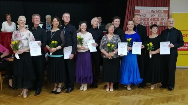 Die Tänze der Vorrunde haben wir mit gutem Gefühl absolviert und sind recht locker in die Endrunde gestartet. Es wurde offen gewertet. In den ersten beiden Tänzen waren die Wertungen bereits gut, wurden dann getoppt durch den Quickstep, der durchweg mit 1 gewertet wurde. Der erste Platz kam danach erwartungsgemäß und hat uns riesig gefreut!