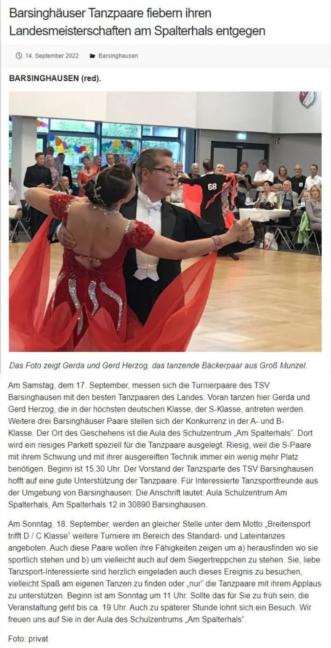 - Berichte (Turnier-Tanzsport und Veranstaltungen)