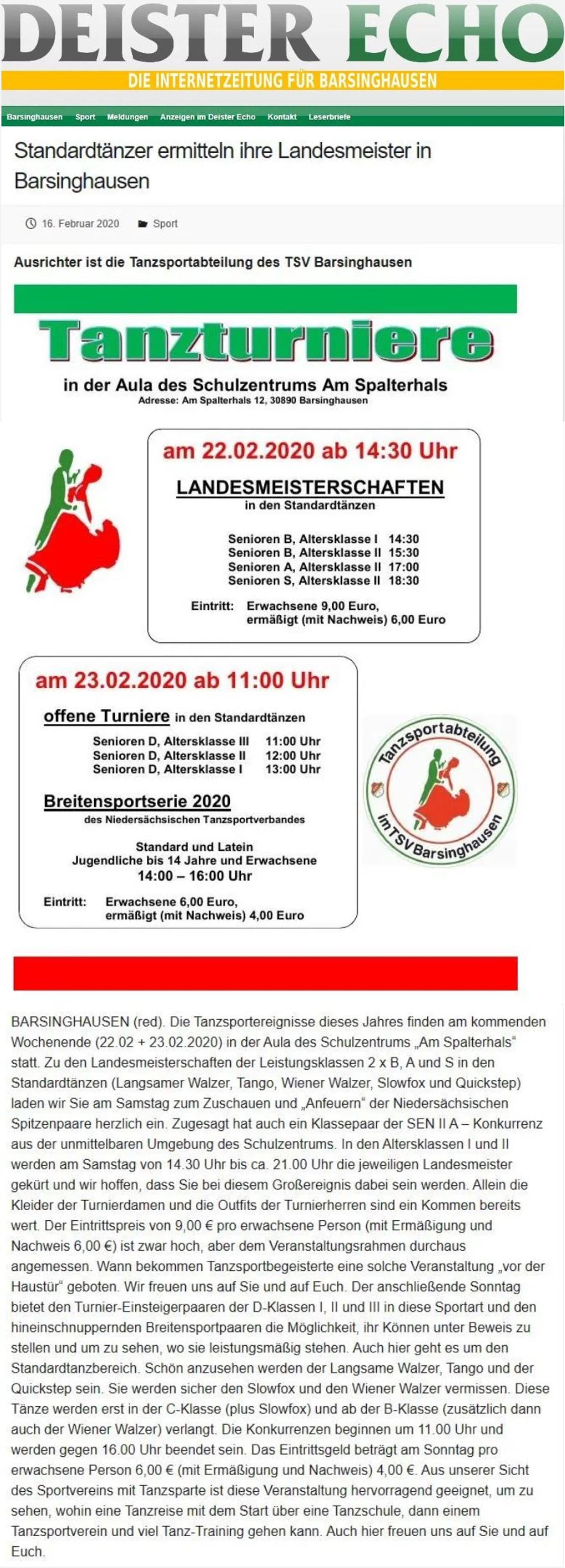 - Berichte (Turnier-Tanzsport und Veranstaltungen)