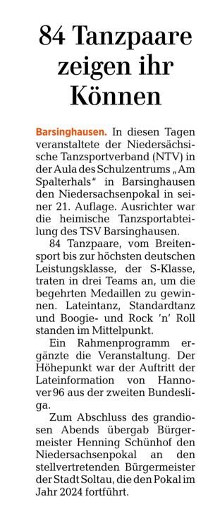 17.02.2023 - HAZ - Mein Verein - 84 Tanzpaare zeigen ihr Können - Niedersachsenpokal
