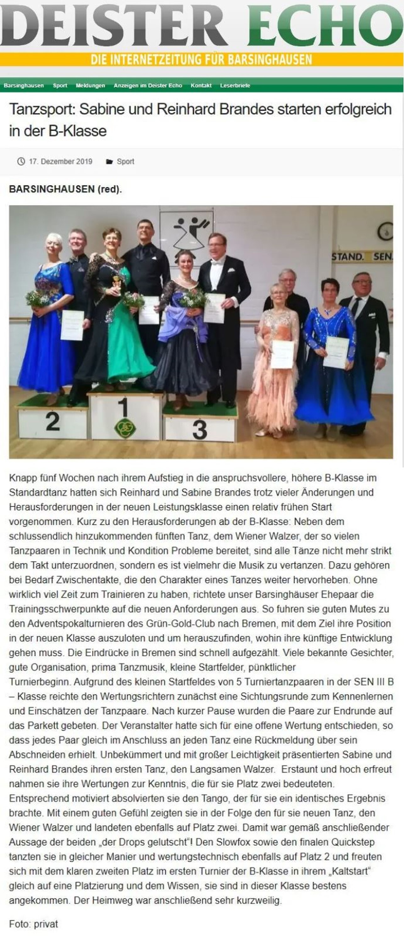 Tanzsport - Sabine und Reinhard Brandes starten erfolgreich in der B-Klasse