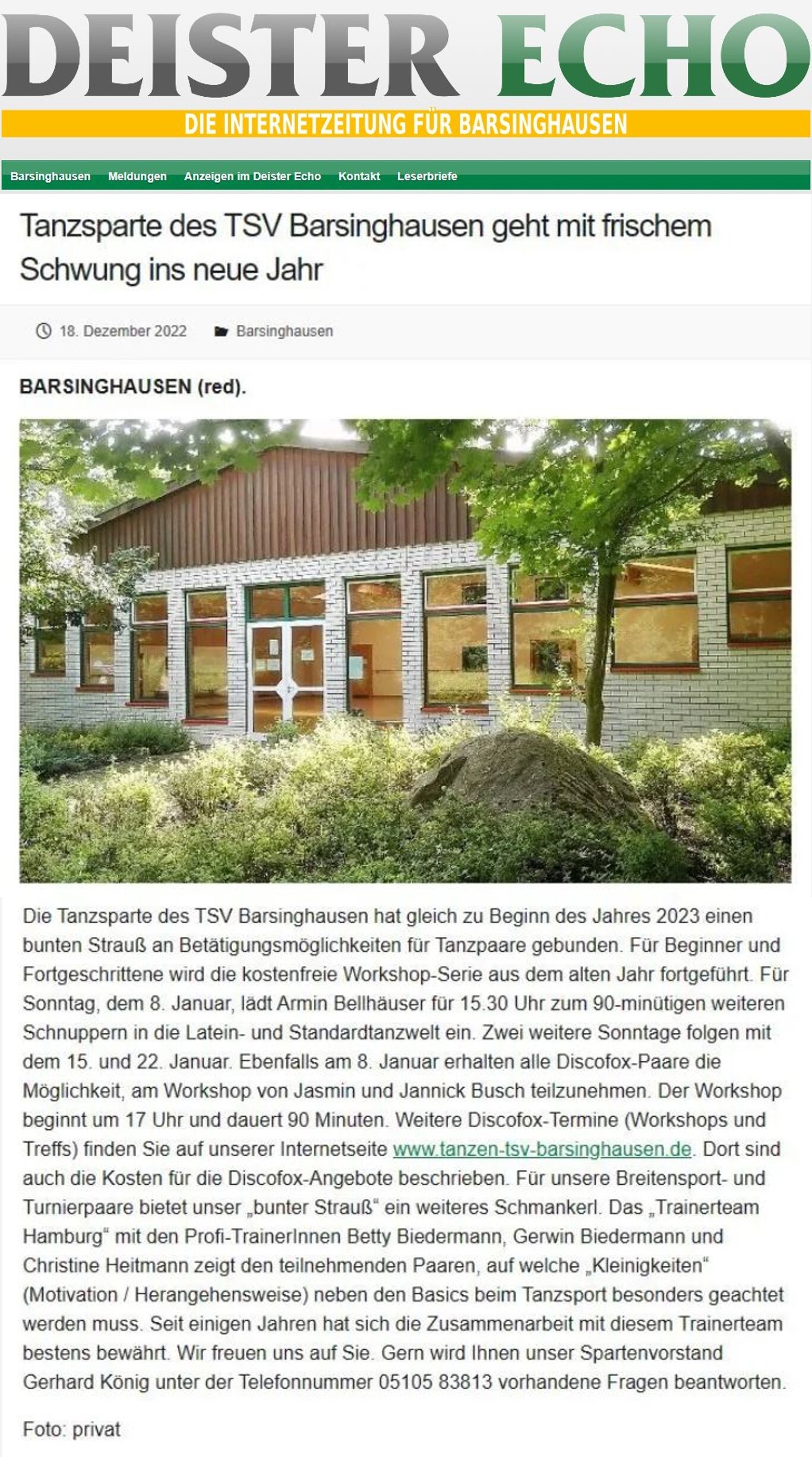 Tanzsparte des TSV Barsinghausen geht mit frischem Schwung ins neue Jahr