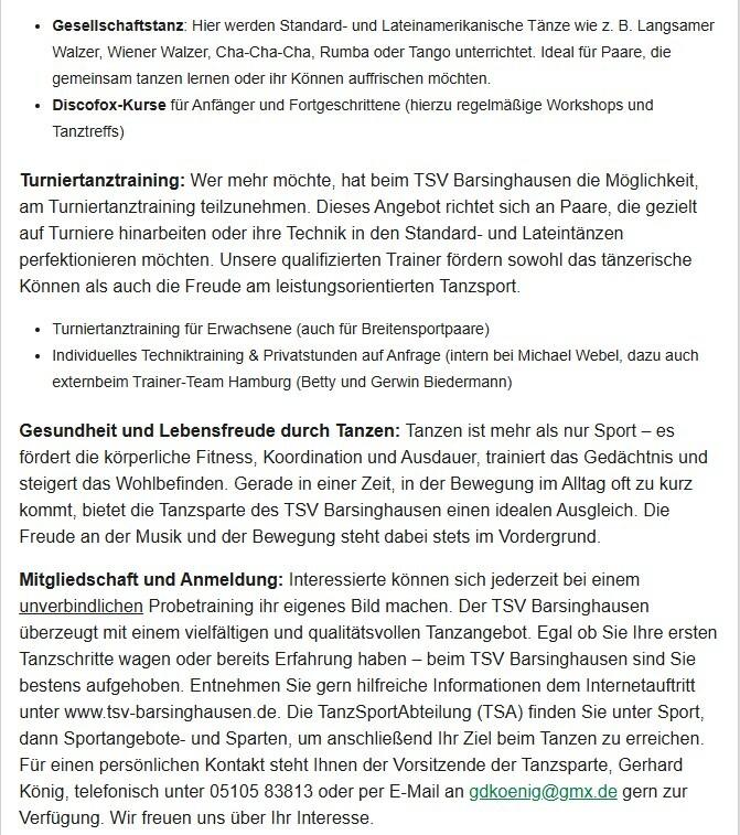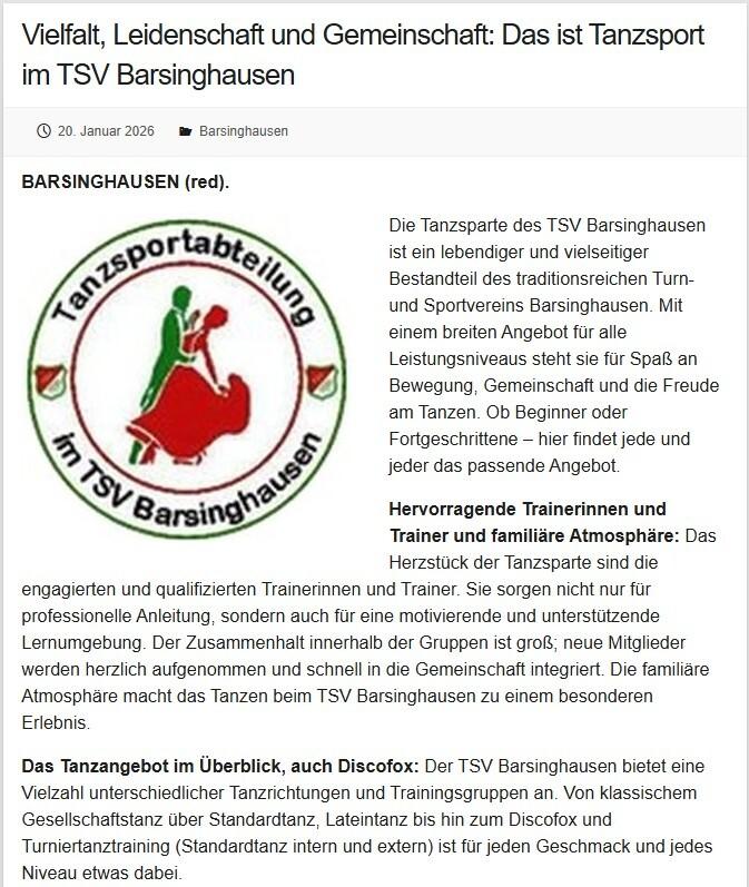 Artikel von Lutz Ahlborn / Pressewart der TSA im TSV Barsinghausen