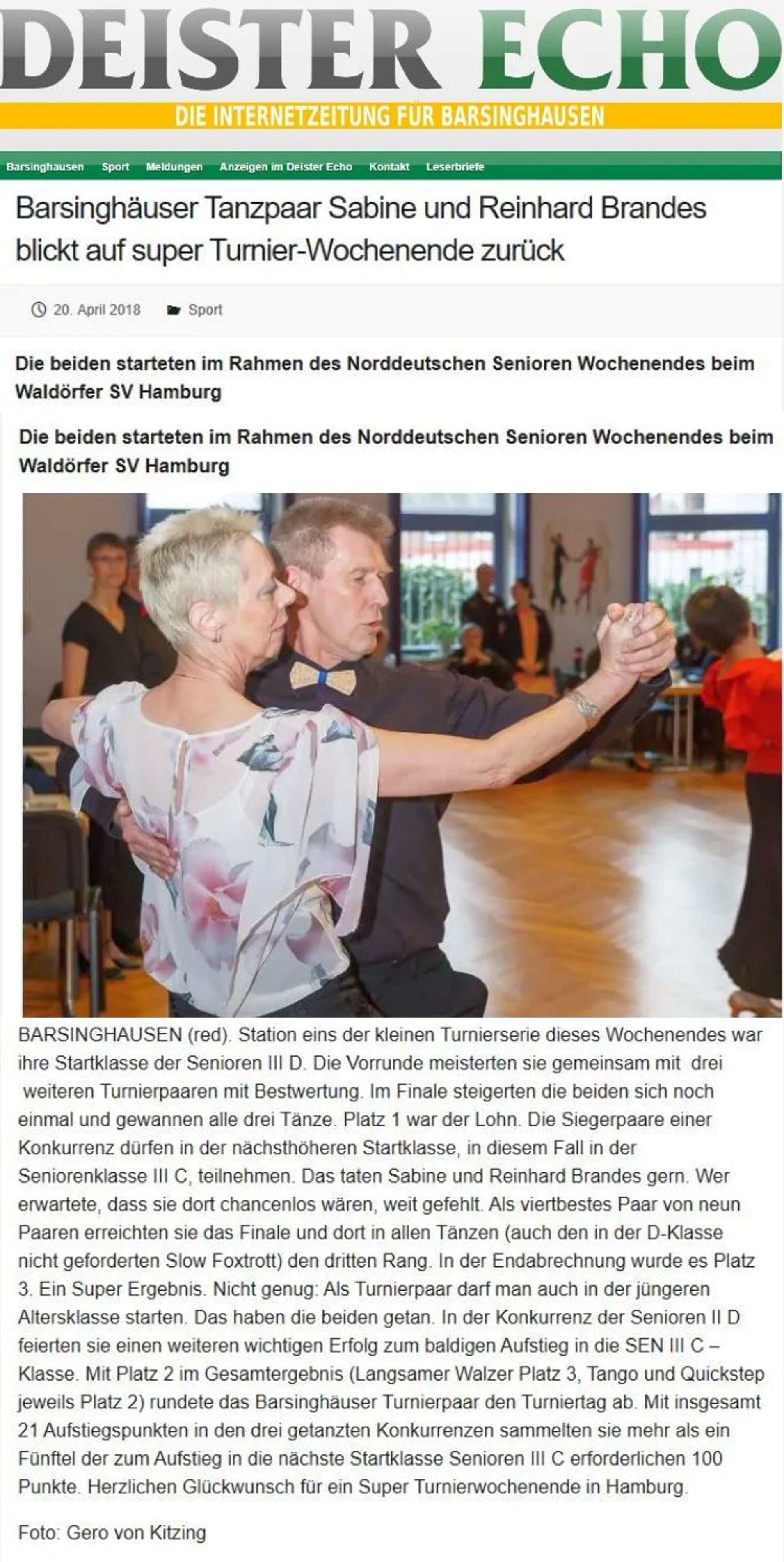 Barsinghäuser Tanzpaar Sabine und Reinhard Brandes blickt auf ein super Turnier-Wochenende zurück