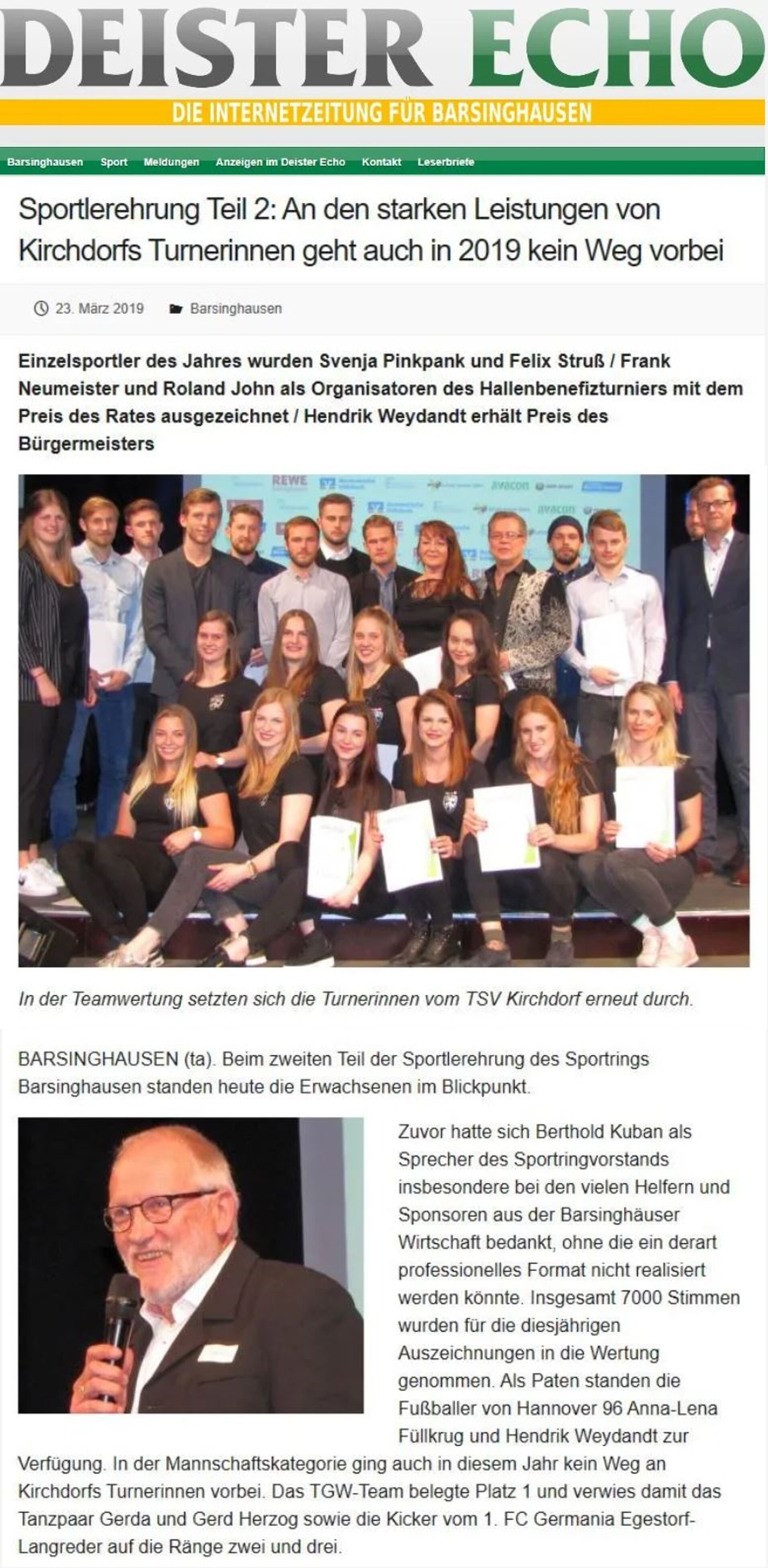 Sportlerehrung mit Tanzturnierpaar Herzog auf Platz 3
