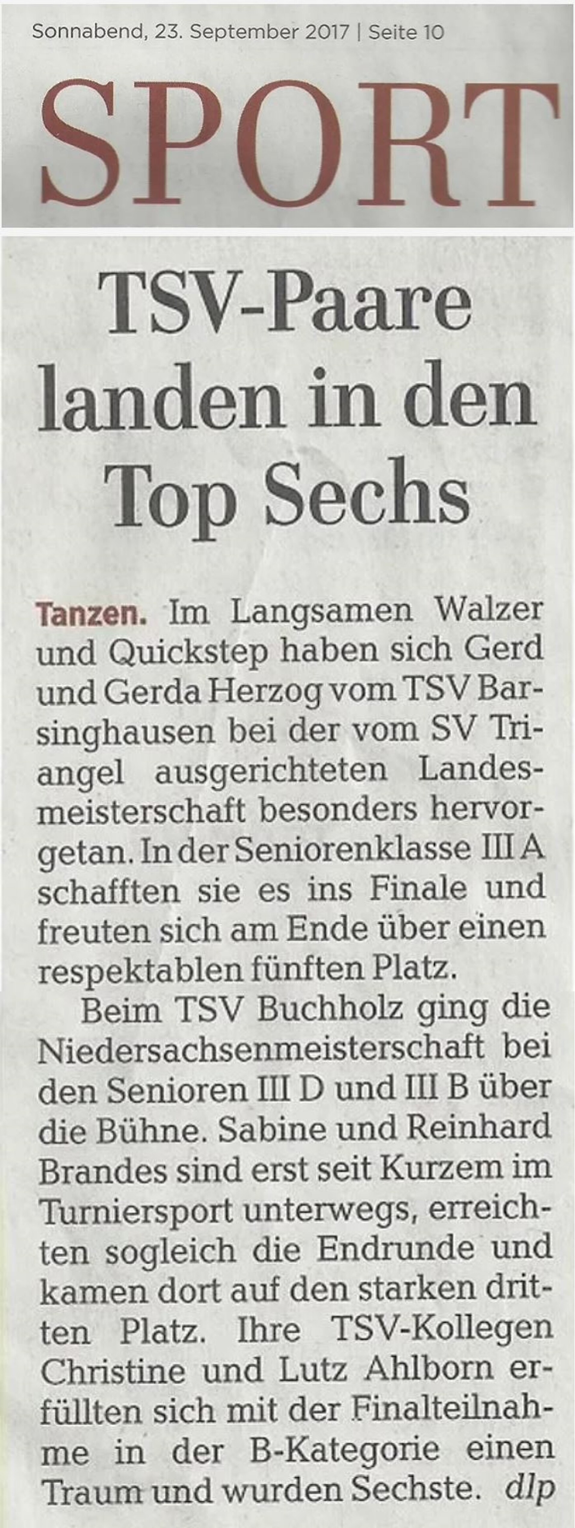 Barsinghäuser Paare landen in den Top Sechs
