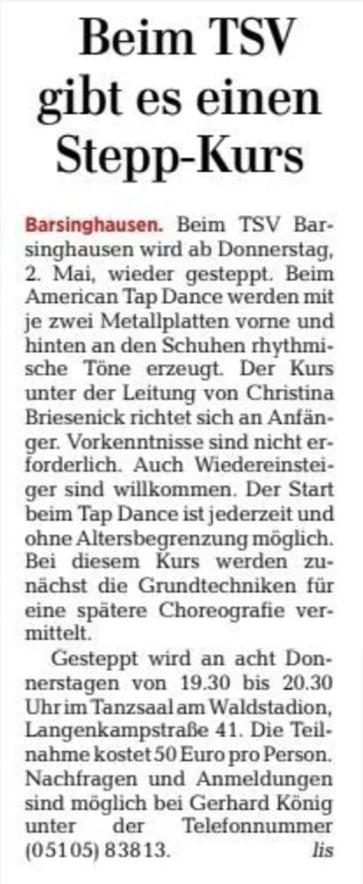 Stepp-Tanz-Kurs im TSV Barsinghausen