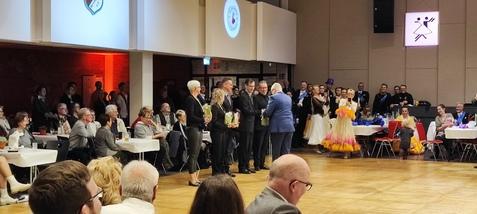 Ein weiteres Highlight: Für sein jahrzehntelanges selbstloses Engagement im Tanzsport durfte Armin Bellhäuser an diesem Abend die Ehrennadel des Niedersächsischen Tanzsportverbands in Bronze und die dazugehörige Urkunde aus den Händen von NTV-Präsident Wolfgang Rolf und NTV-Pressesprecherin Martina Lotsch entgegennehmen.