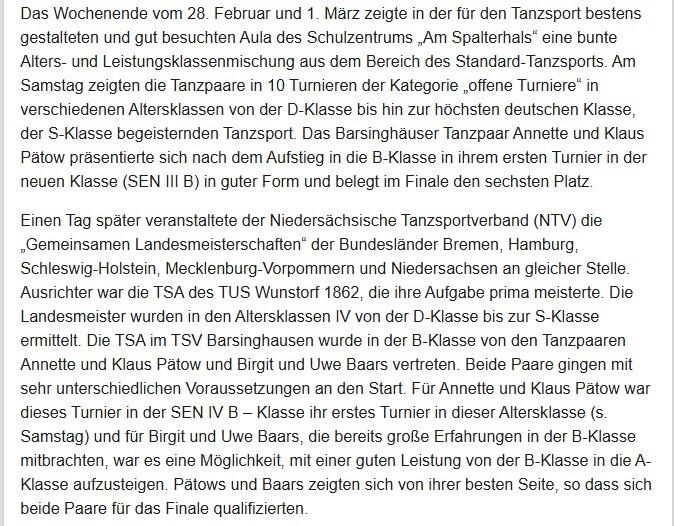 - Berichte (Turnier-Tanzsport und Veranstaltungen)