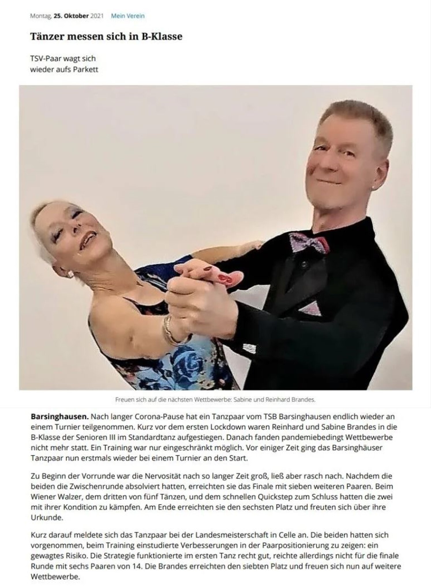 HAZ - Barsinghausen - Artikel vom 25.10.2021 (Mein Verein)