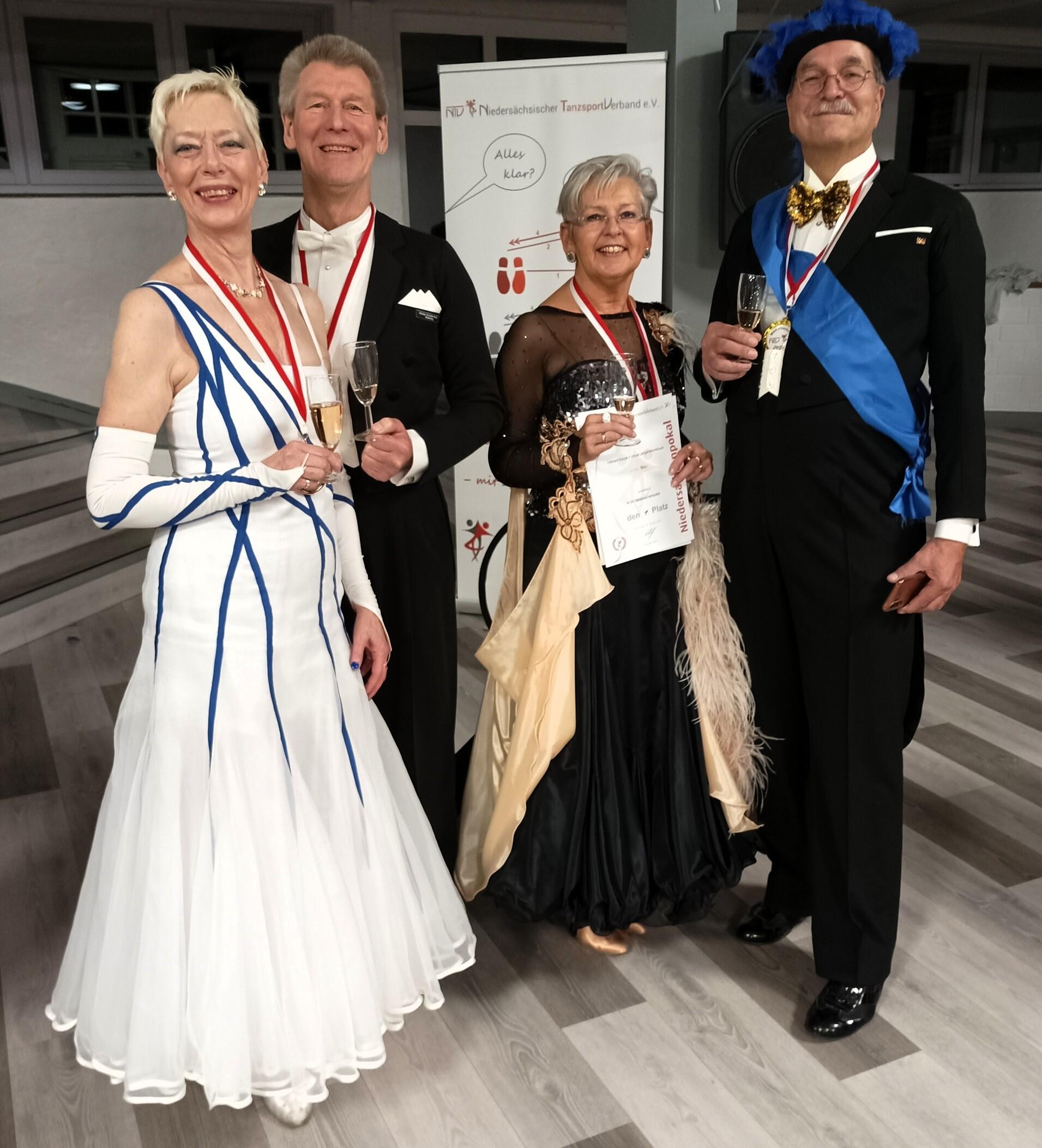 Zum traditionellen Familienfest des Niedersächsischen Tanzsportverbandes (NTV), dem Niedersachsenpokal, hatten zwei Barsinghäuser Tanzpaare gemeldet. Ursula Langeheine-Krause und Herbert Krause sowie Sabine und Reinhard Brandes machten sich am 31. Januar 2026 auf den Weg nach Lehre, gleich hinter Braunschweig im Landkreis Helmstedt gelegen, wo der NTV gemeinsam mit dem VfB Fallersleben die dortige Börnekenhalle für die Veranstaltung vorbereitet und vortrefflich geschmückt hatte. Vom sachlichen und funktionalen Charme der Sporthalle war so gut wie nichts mehr zu sehen.
