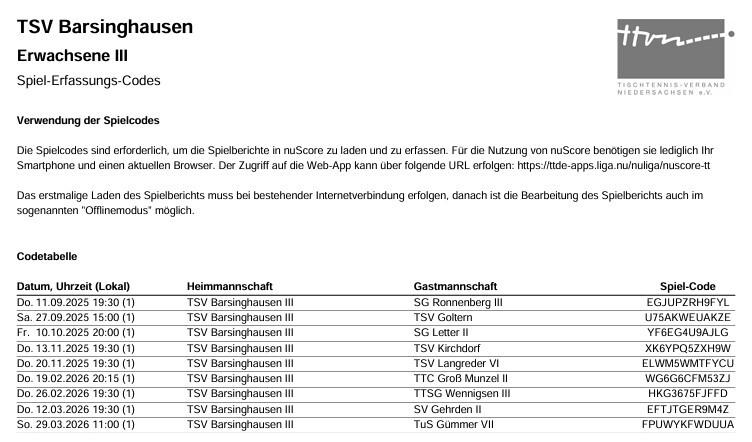 Basche III- Spielerfassungs-Codes