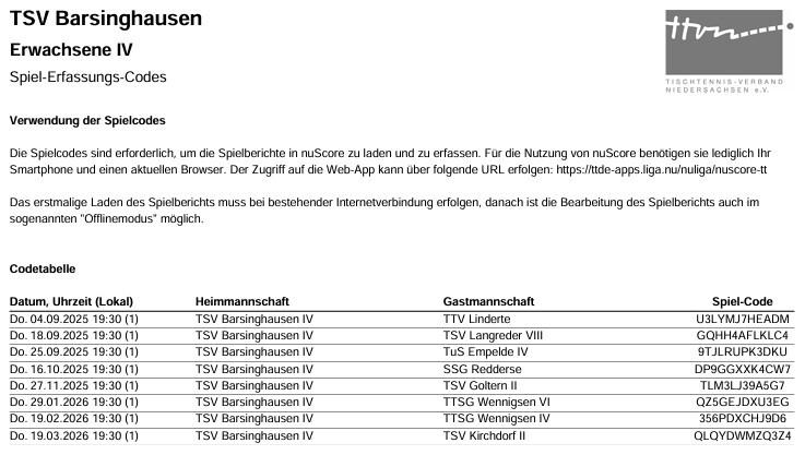 Basche IV - Spielerfassungs-Codes